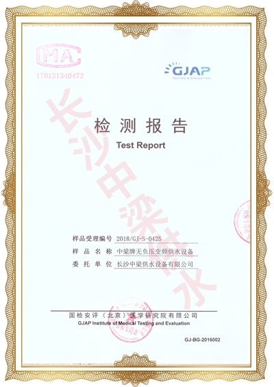 長沙中梁供水設備有限公司已先后通過湖南省衛生廳國產涉及飲用水衛生產品衛生許可批準;